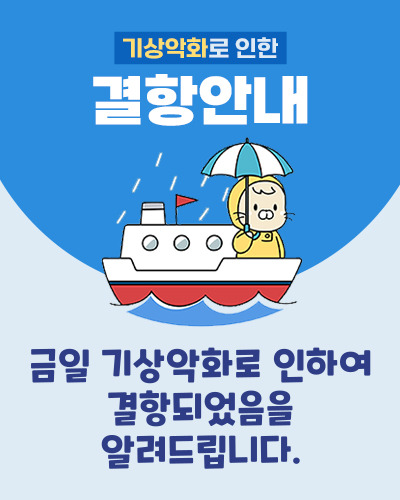 우천시에도 유람선이 출항하는 경우가 있으며 기상에 따른 결항시에는 고객님들께 문자 또는 전화연락을 드려 취소안내 진행해드립니다.